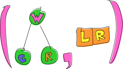 (Node 'W' (Node 'C' Empty Empty) (Node 'R' Empty Empty),[L,R])