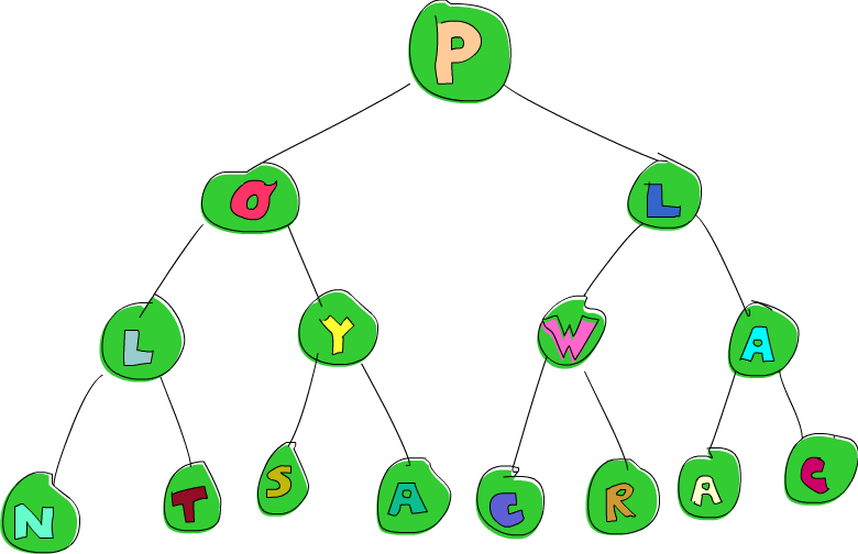现在我们有了一棵树,他的 root 是 'W',而他的左子树的 root 是 'C',右子树的 root 是 'R'。而由于我们先往右走再往左走,所以面包屑是 [L,R]。
